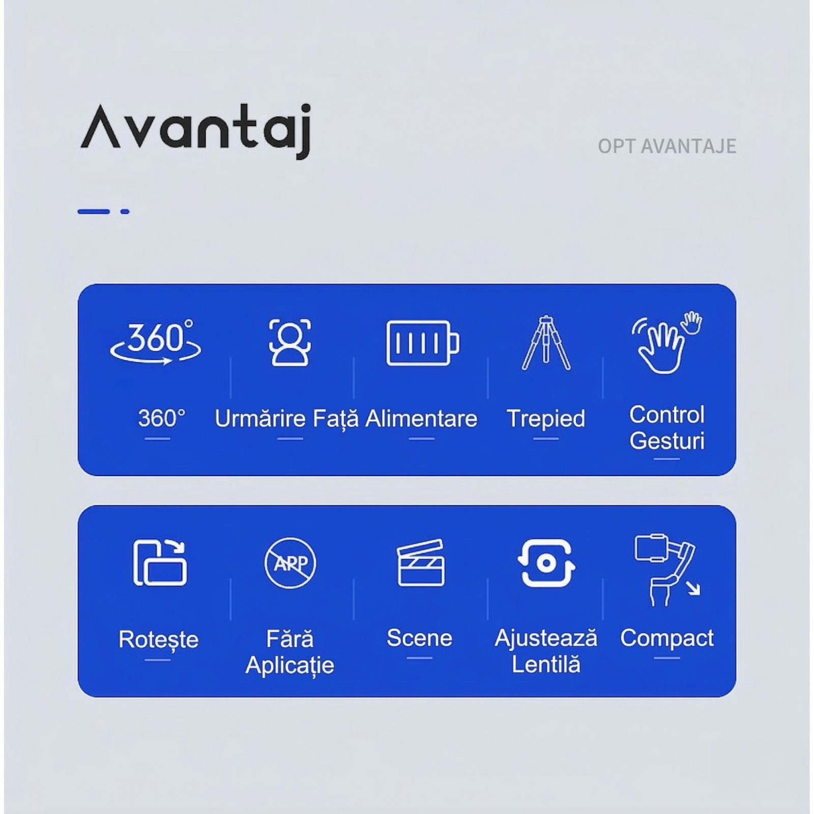 | ✓ | Rotire 360 grade: Ajustare fluida pentru miscari naturale in timpul filmarii. |