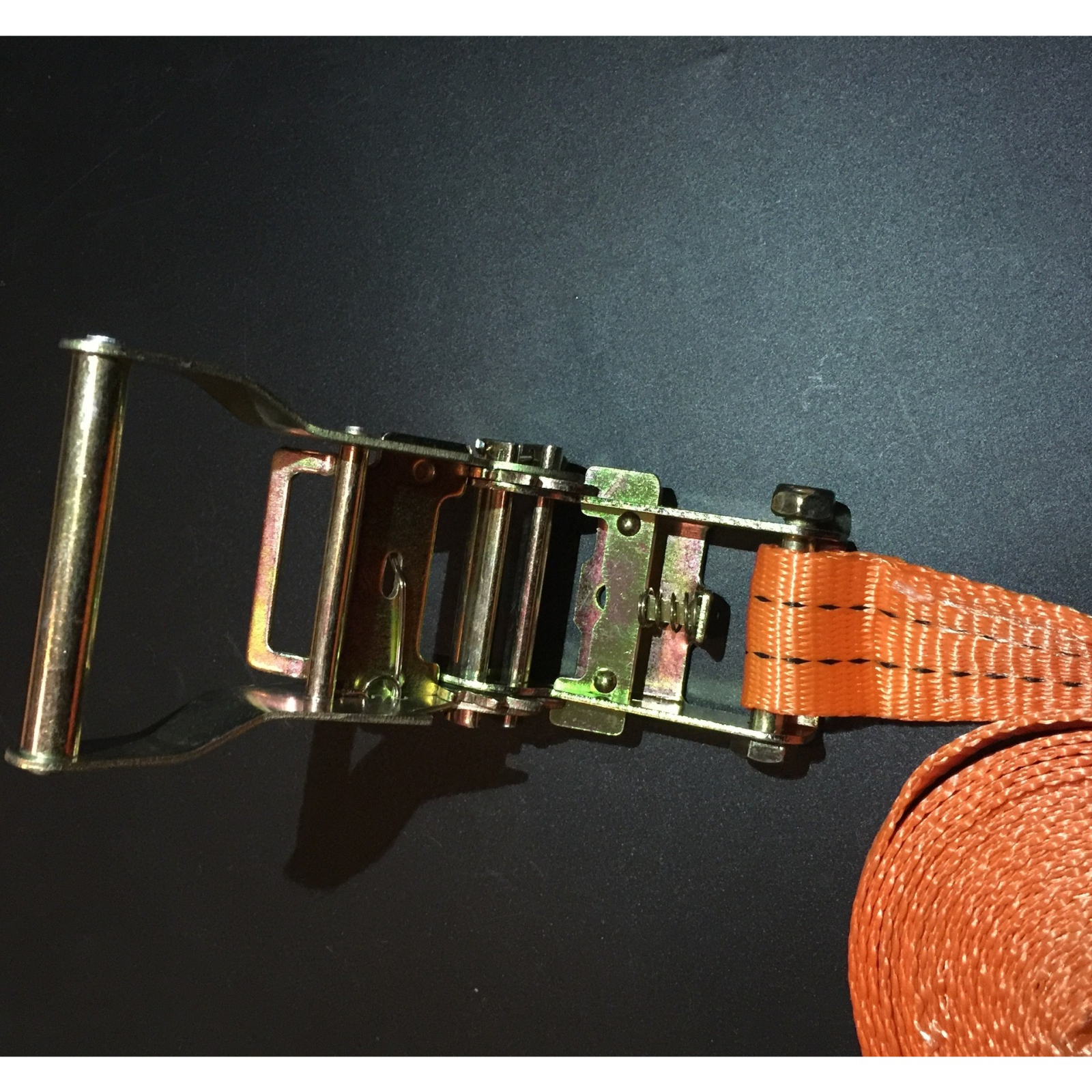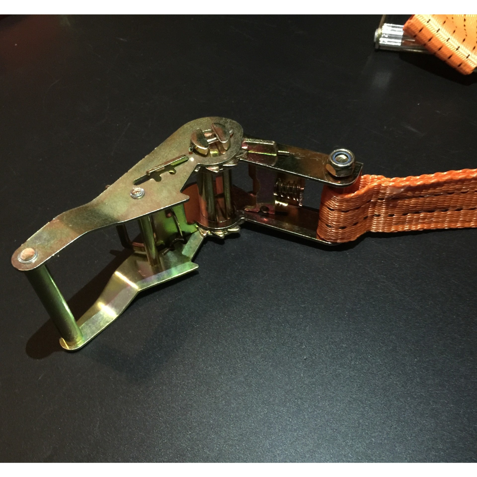 Chinga ancorare cu clichet, 10 m lungime, 5 cm latime, poliester si metal, portocaliu