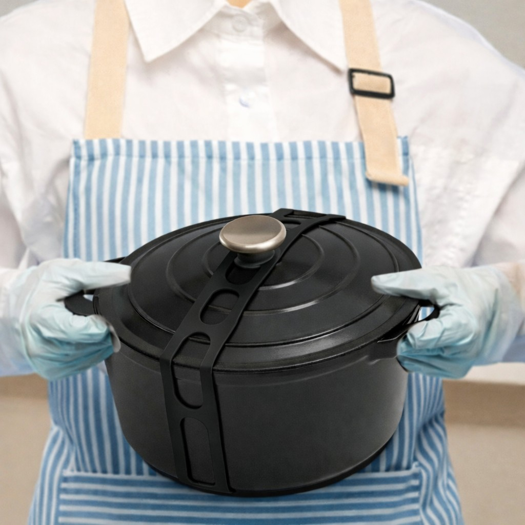 Ajuta la mentinerea capacului fix pe vase in timpul gatitului sau transportului, prevenind deplasarea si varsarea continutului.