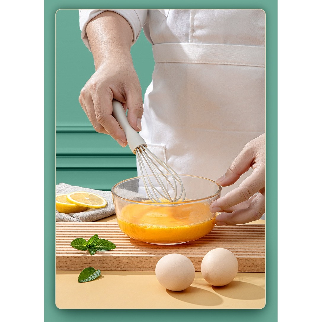 Setul include sase ustensile utile pentru gatit, realizate din silicon alimentar si inox. Acestea rezista la temperaturi ridicate si sunt potrivite pentru preparate cu suprafete antiaderente.