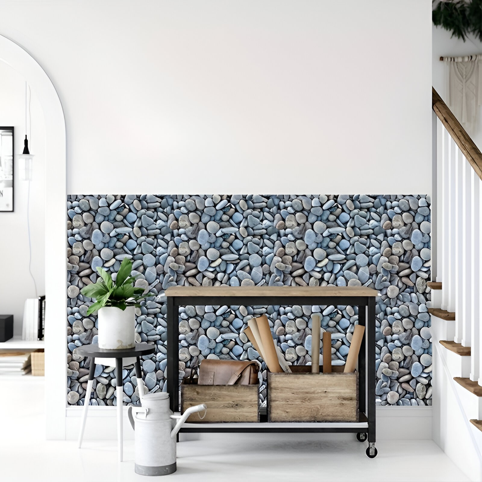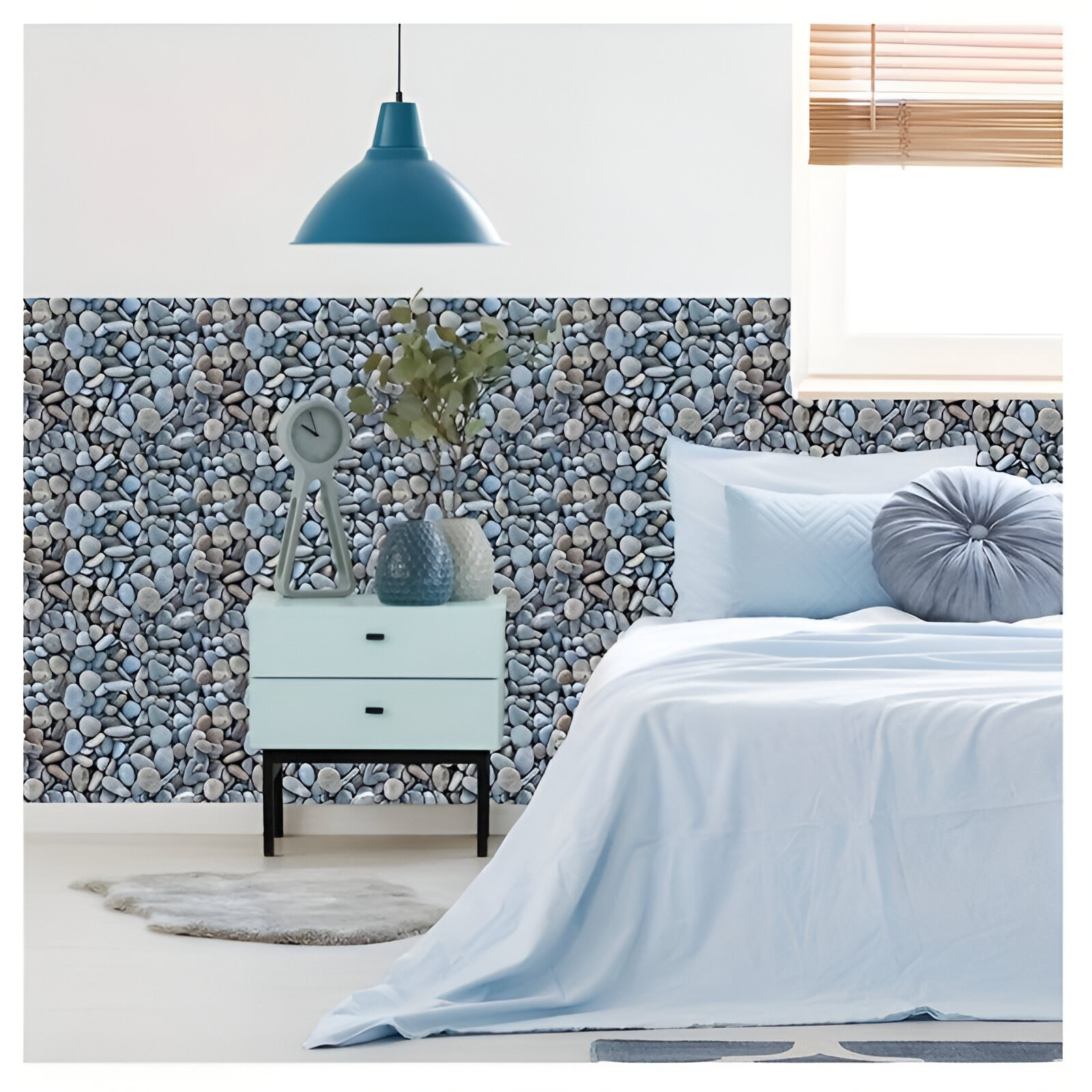 Tapetul autocolant 3D cu model de pietre mici aduce un aspect texturat si natural peretilor, oferind un plus de stil si personalitate in diverse incaperi.