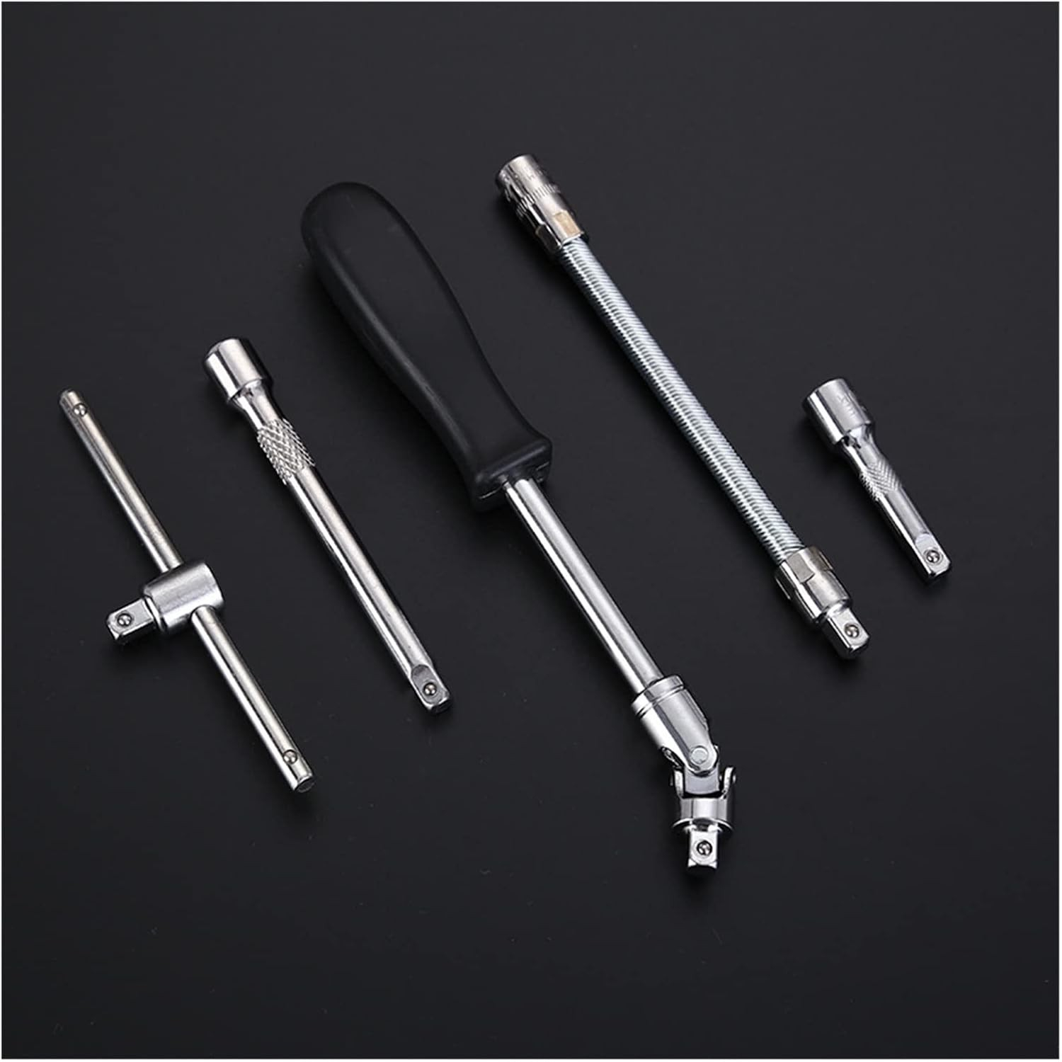 Varietate scule: Include chei tubulare, surubelnita, clichet, imbusuri si accesorii utile. |