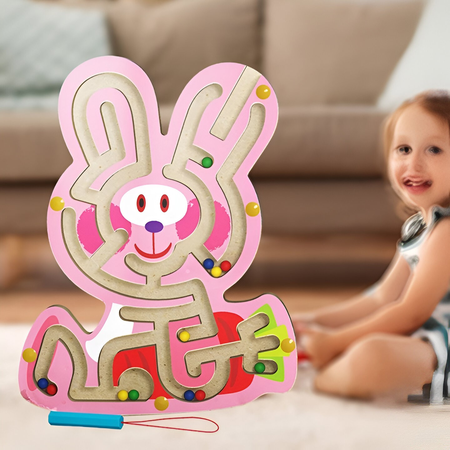 Ajuta la dezvoltarea coordonarii ochi-mana si a abilitatilor motorii fine prin ghidarea bilelor intr-un labirint inchis. Ofera o activitate educativa si distractiva pentru copii.