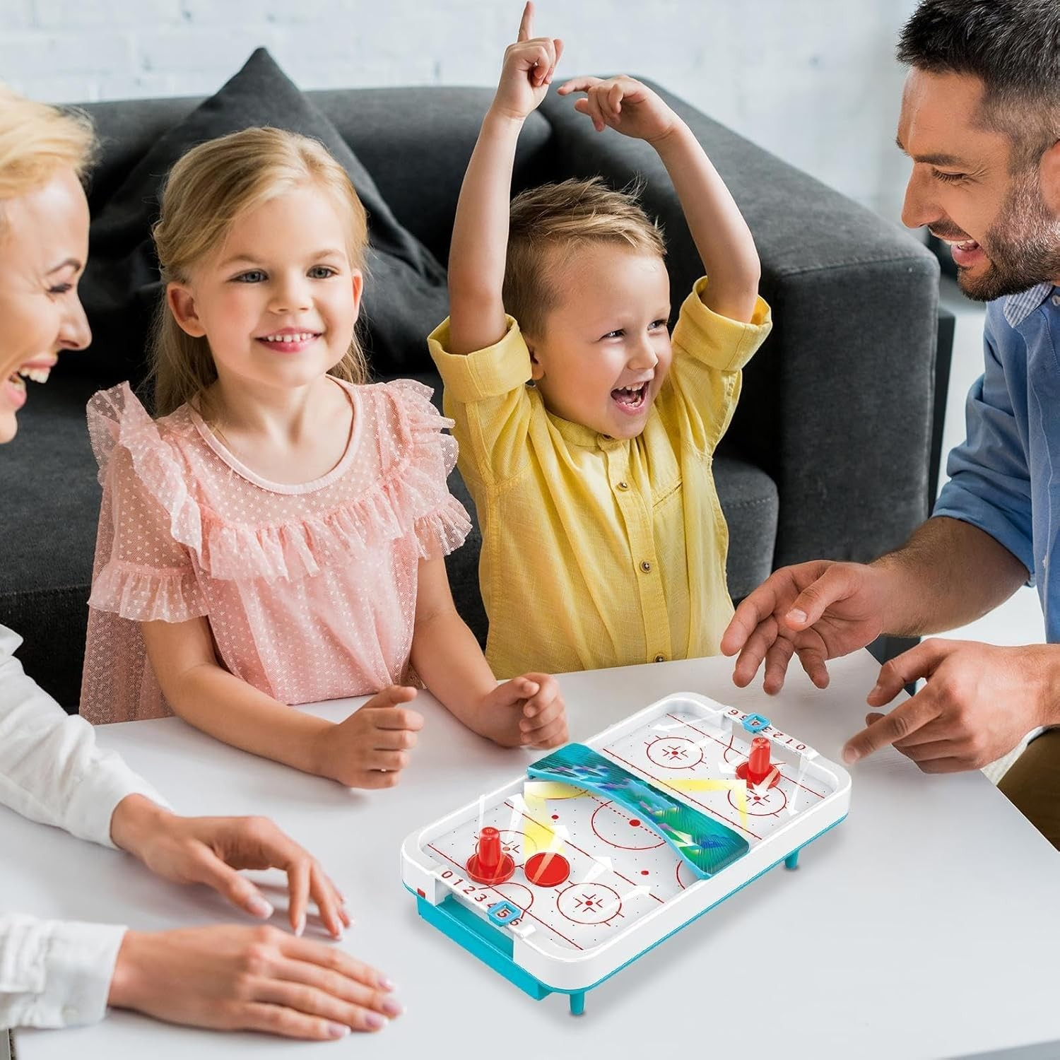Masa de joc transforma orice suprafata intr-un teren de ice hockey, oferind o experienta interactiva pentru copii si adulti. Este potrivita pentru jocuri rapide si dinamice, cu doua persoane.