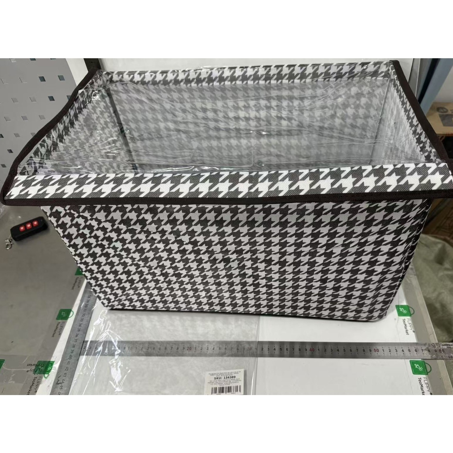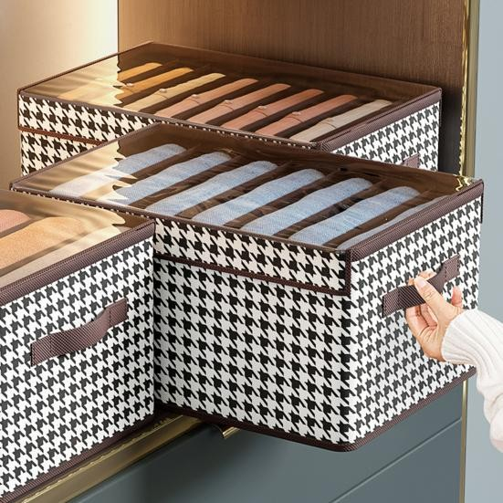 Pachet 2+1 Cutie Depozitare cu Capac Transparent, Model Mare in Carouri, Maro