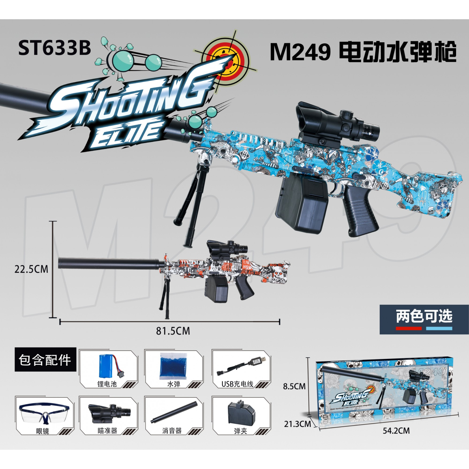 • 1 pistol electric, 1 pereche ochelari de protectie, 5000 bile de gel, cablu de incarcare