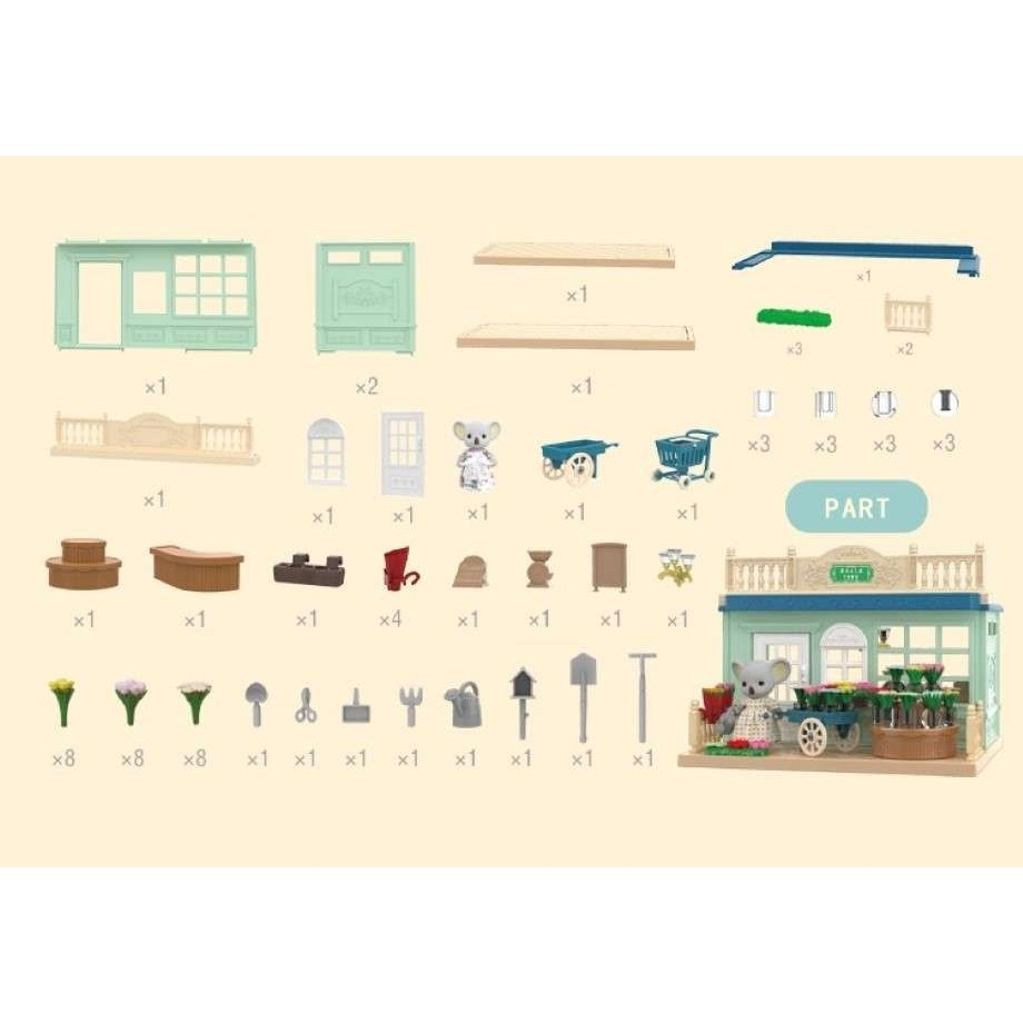 Ajuta copilul sa isi dezvolte imaginatia si creativitatea prin joaca in propria florarie. Setul permite asamblarea bucatariei si explorarea unei lumi imaginare cu mobilier si figurine.