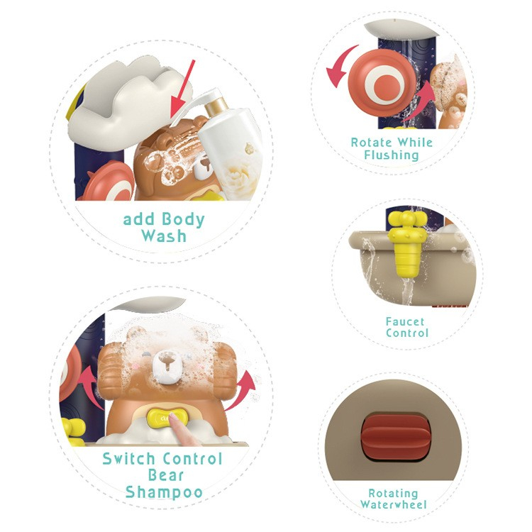 Distractie in baie: Creeaza spuma si curgere de apa pentru a face baia mai atractiva pentru copii. |