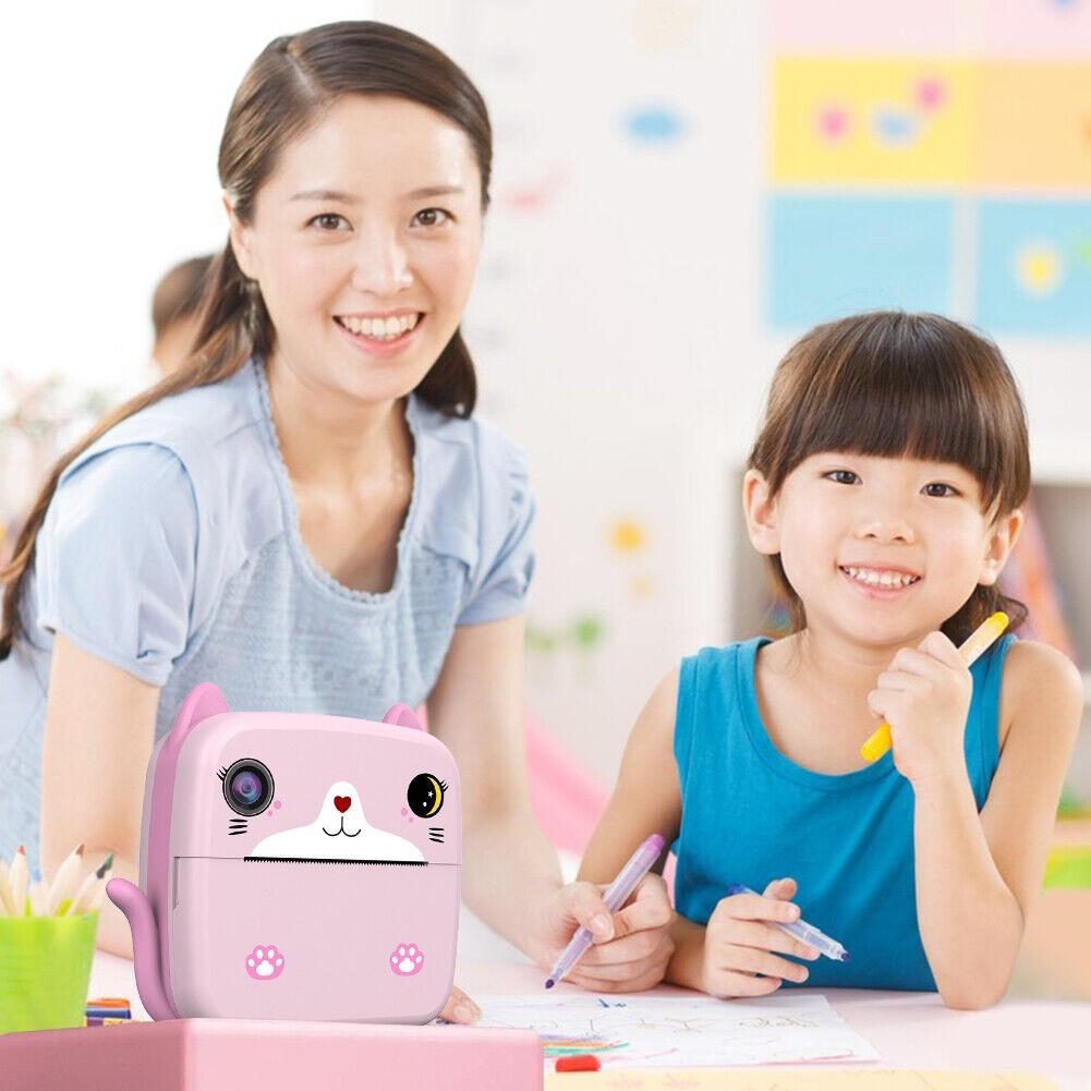 Camera ofera posibilitatea de a face fotografii si videoclipuri HD, cu imprimare instantanee alb-negru. Este conceputa pentru a stimula creativitatea si distractia copiilor.