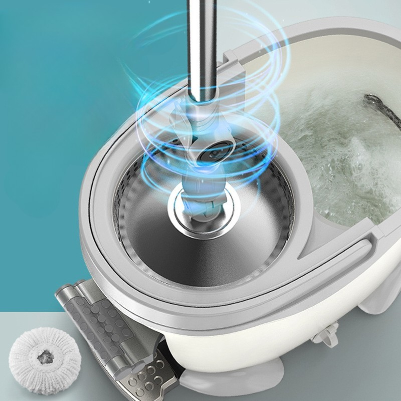 Faciliteaza curatarea podelelor printr-un sistem de stoarcere cu pedala si mop rotativ, care reduce efortul fizic si optimizeaza uscarea mopului.