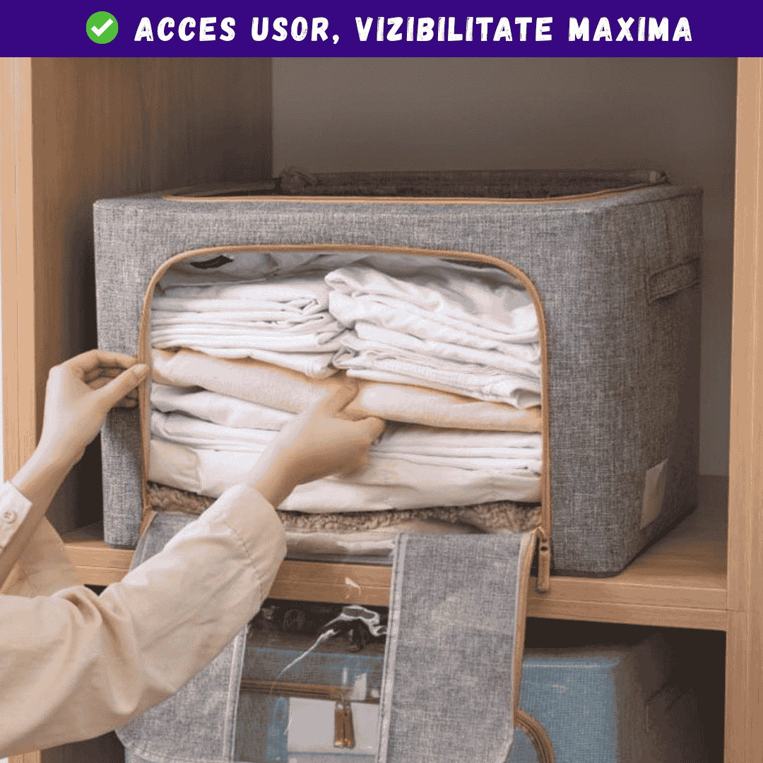 - 1 x Cutie mare de depozitare pliabila 50x40x33 cm cu cadru metalic