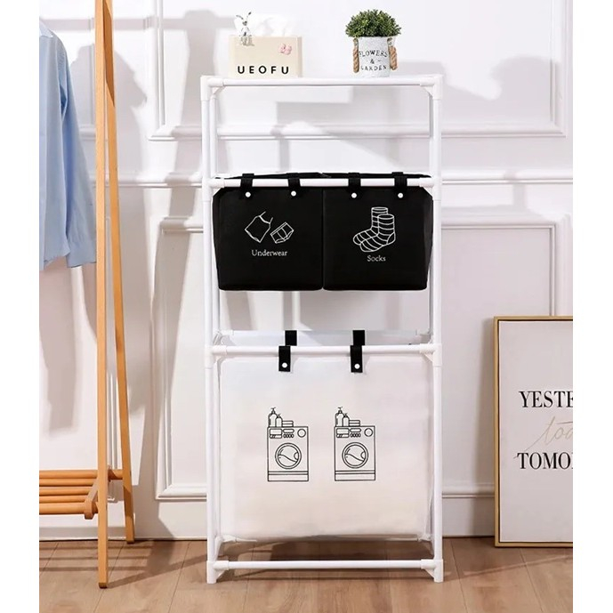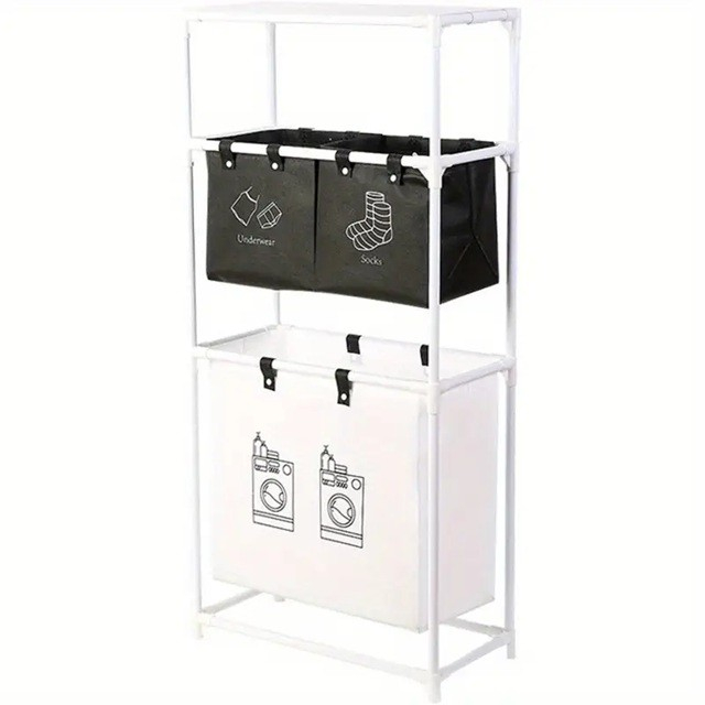 Aceasta solutie ofera o organizare practica si stabila pentru hainele murdare, permitand economisirea spatiului si facilitand sortarea. Este o alegere potrivita pentru cei care cauta functionalitate si durabilitate.