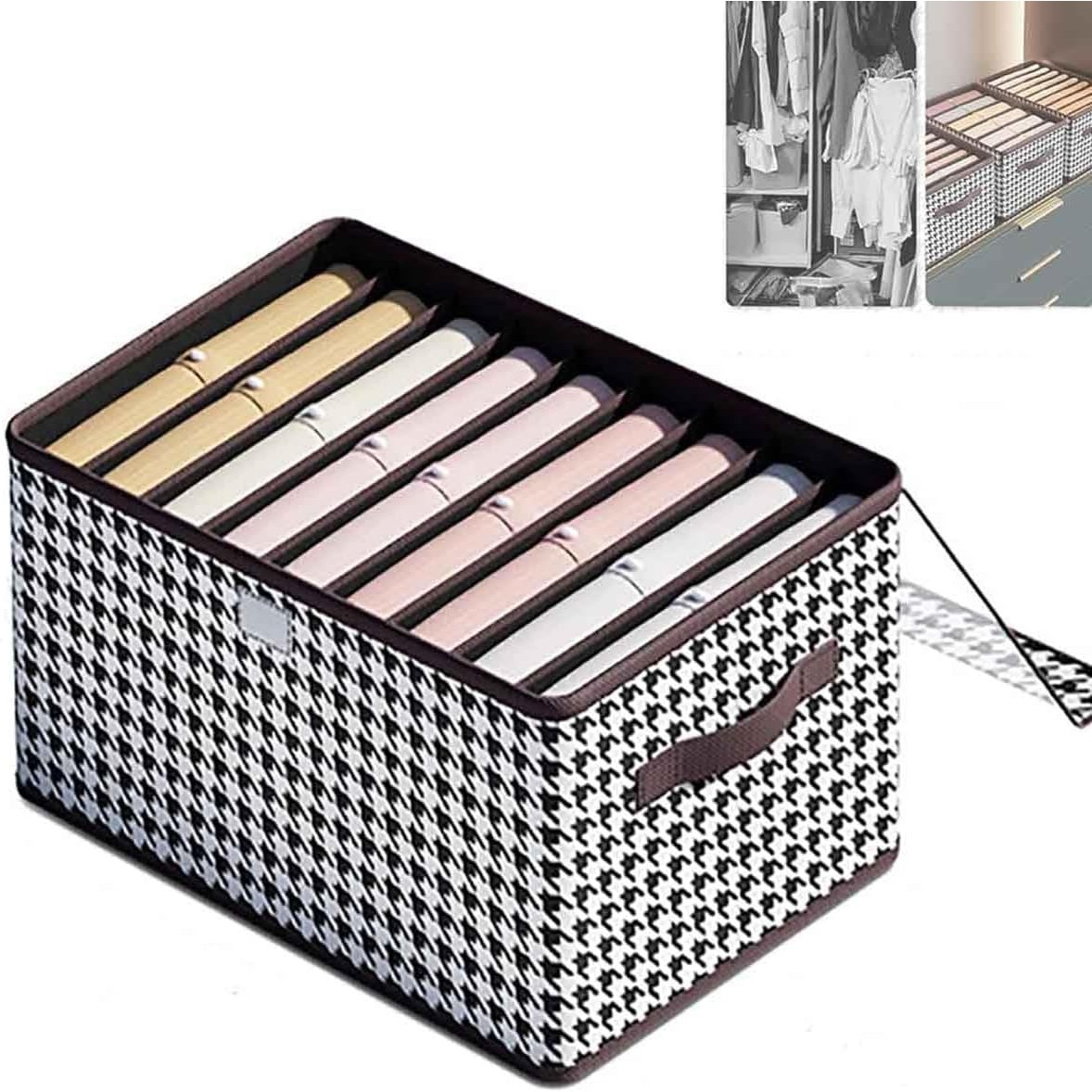 Ordine mai usoara in dulap si sertare, cu un set de 3 cutii de depozitare textile, fiecare avand 9 compartimente pentru haine, lenjerie, sosete sau sutiene. Acest pachet 2+1 ofera spatiu clar delimitat pentru articolele mici, astfel incat sa le gasesti rapid si sa pastrezi garderoba mai organizata.